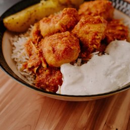 We had come to Lincoln for a lecture/performance at the Polley Music Library and wanted to get some dinner, so I checked Yelp reviews of walkable places. We were intrigued by the name of Sultan's Kite so we set off for there, what could that even be? It seemed like a mysterious adventure. We were momentarily thrown off since it, at first glance, seemed to just be a regular gyro place. But then we were greeted by a staff member who was so genuinely nice and helpful that we knew this was the right place. We each got a chicken tikka korma plate, since that was unexpected. I got the spicy green tzatziki, and it was actually quite spicy. We were surprised at how heavy the boxes were; you get a lot of food for such a low price. My traveling companion was surprised again when he realized he had eaten the whole thing, and suggested we could drive to Lincoln again tomorrow so we could come here again. I suggested he could buy another meal to take home, as I myself was bringing home enough leftovers for the next day. We really did enjoy the chicken tikka korma. So tender and delicious. The experience here was so nice, we ended up forgetting to ask what a Sultan's Kite even is. Maybe we'll remember next time.